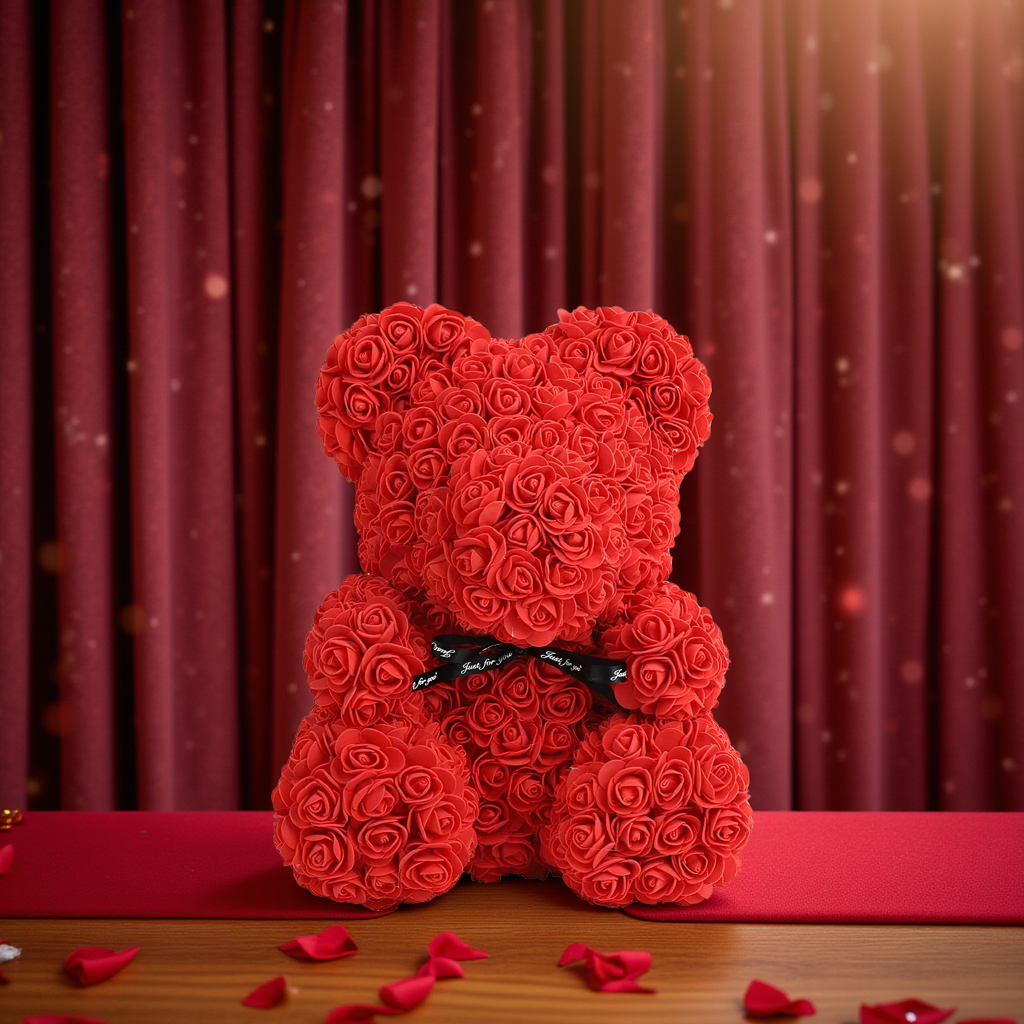 Ovaj impozantni meda ručno je izrađen od stotina mekanih 3D ruža koje izgledaju i na dodir deluju neverovatno realistično. Za razliku od običnog cveća koje traje nekoliko dana, ovaj meda će godinama krasiti prostor i podsećati na posebne trenutke.
